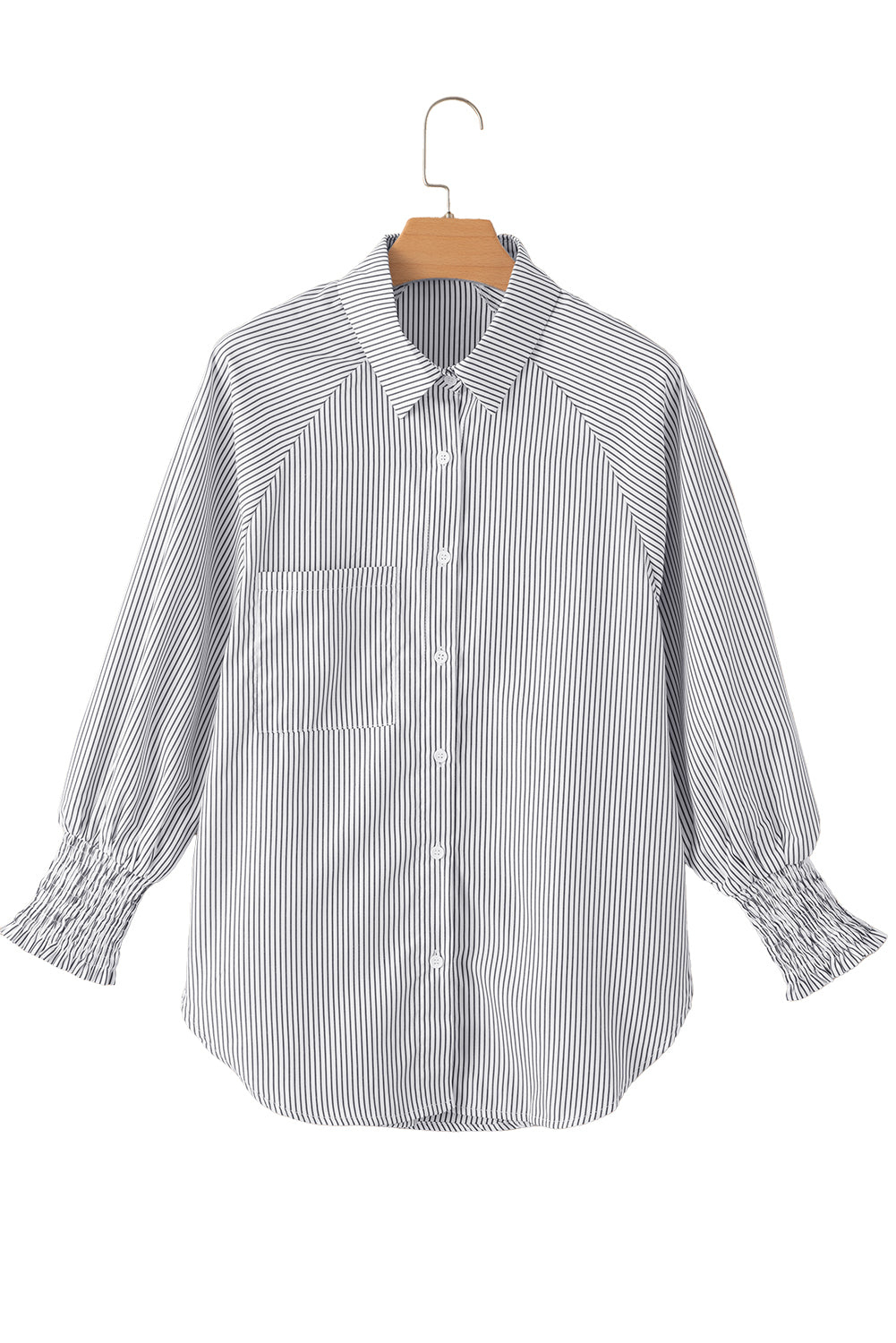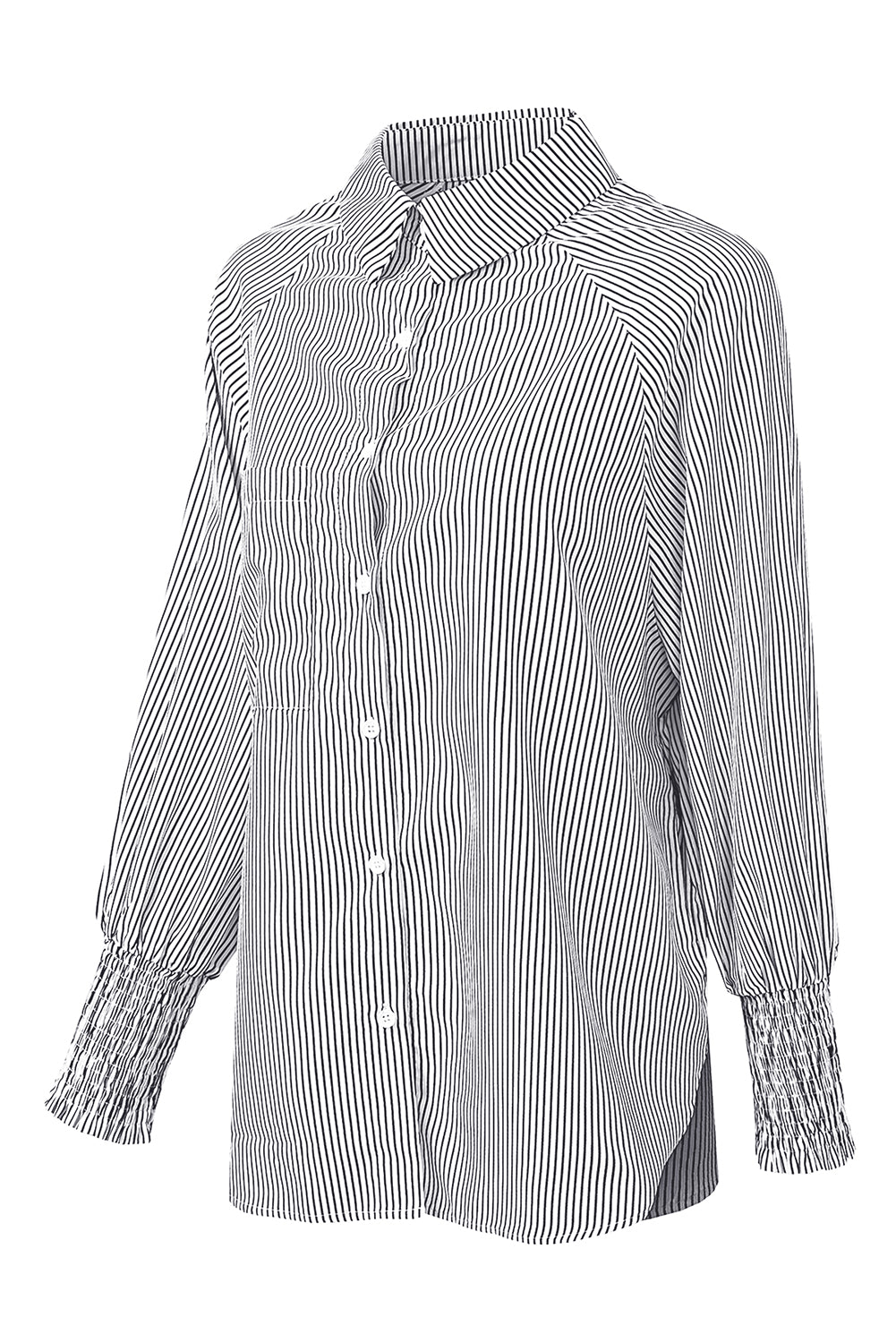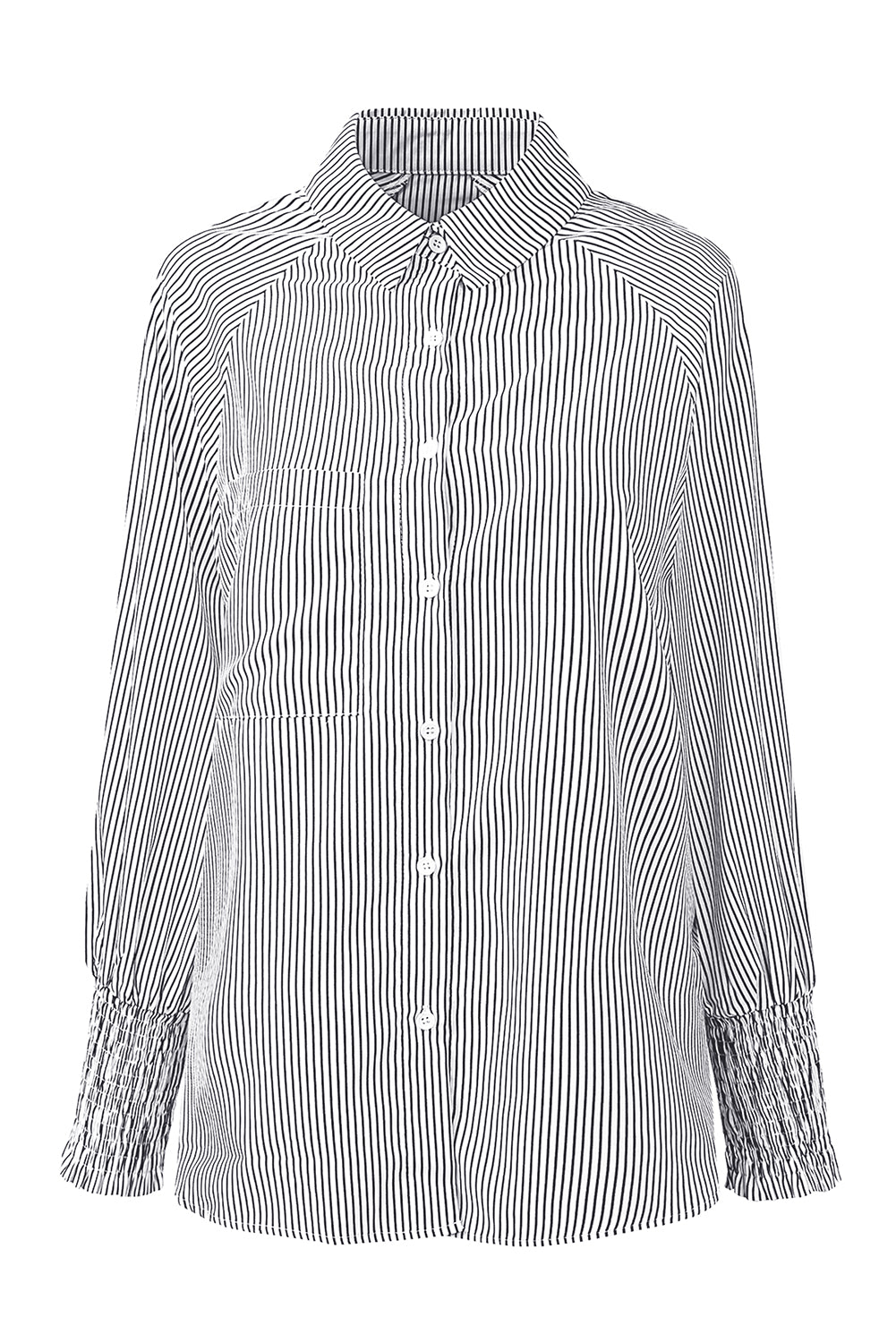 • Crafted with attention to detail, the shirred cuffs add a touch of elegance to the classic striped design.