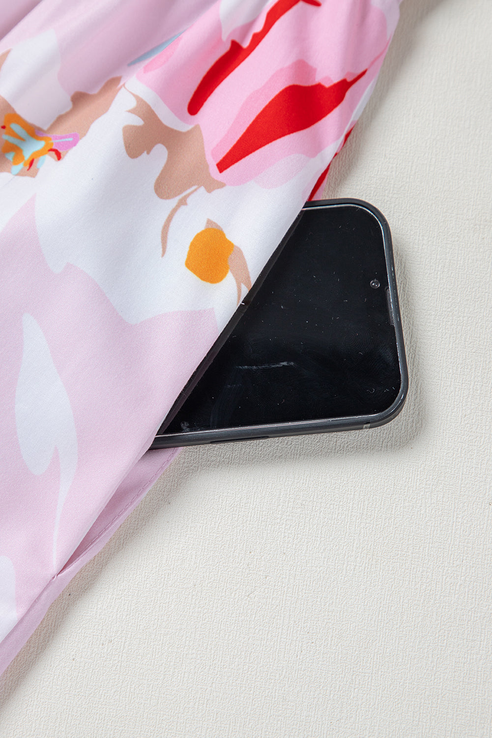 Pink Floral Print Knotted Shoulder Smocked Maxi Dress