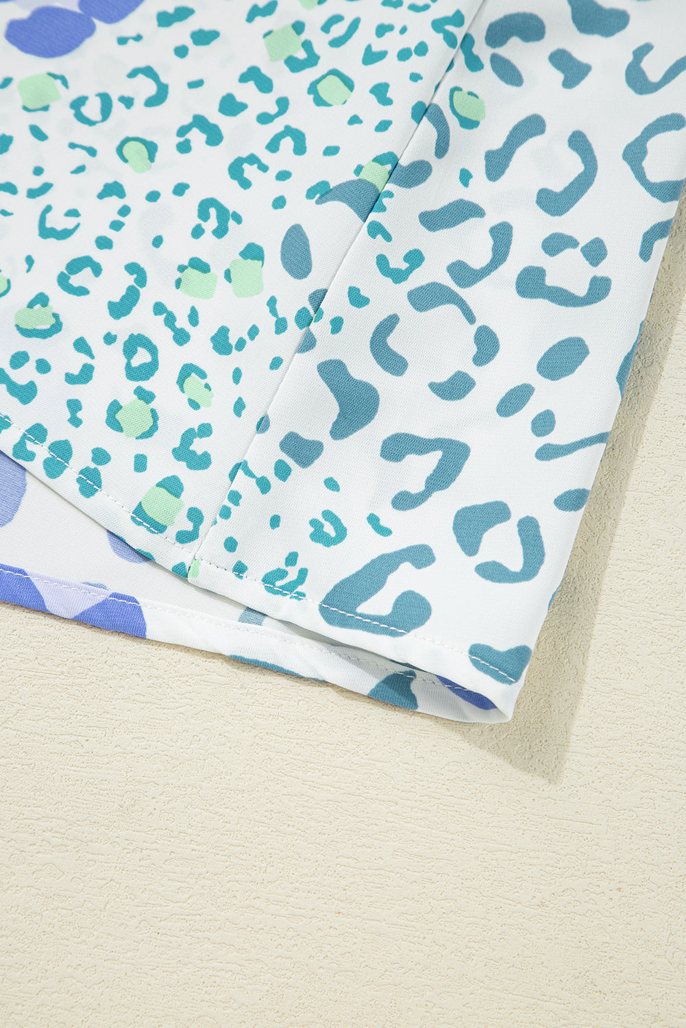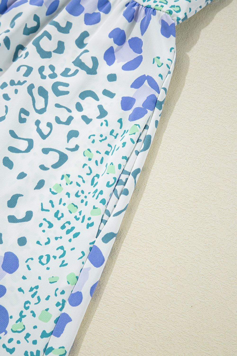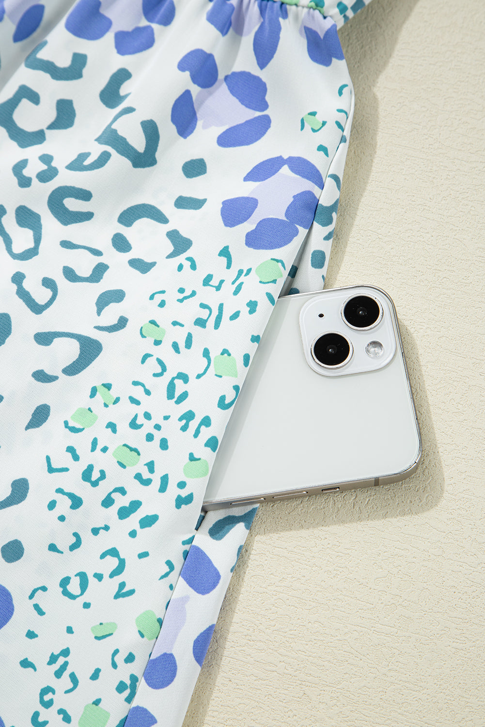 Sky Blue Floral Bow Front Puff Sleeve Mini Dress