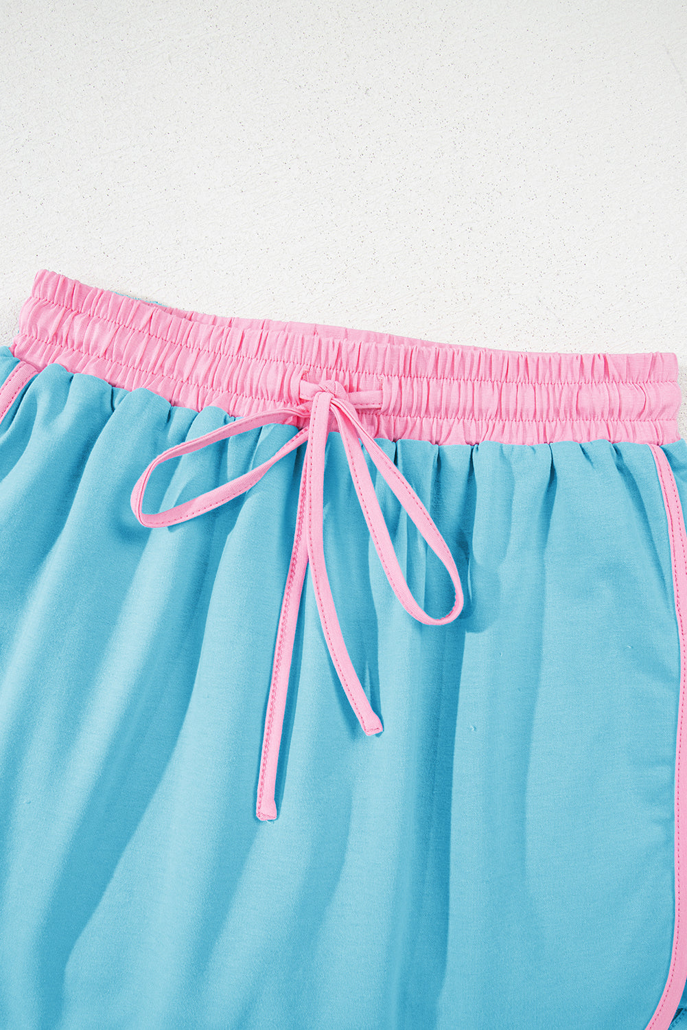 Turquoise Colorblock Edge Drop Shoulder T Shirt and Skort Set